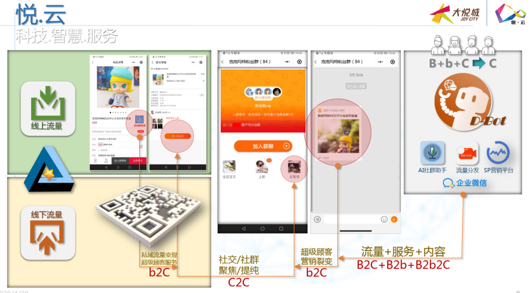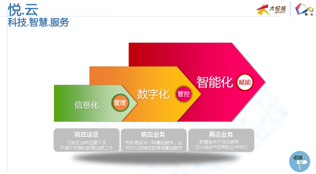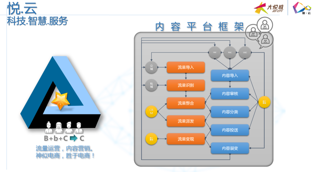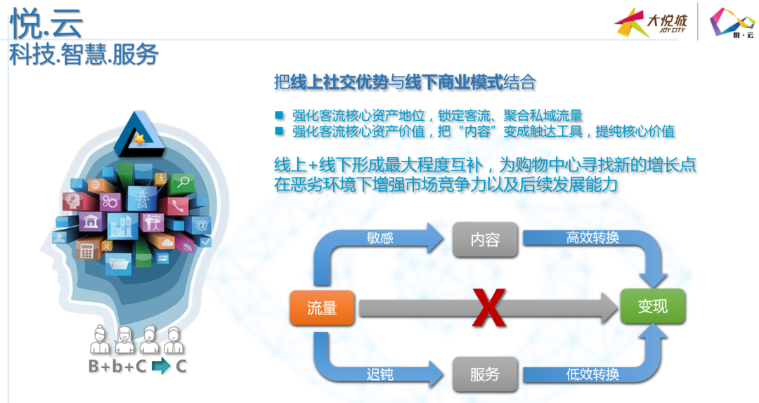 无论如何,疫情的爆发和持续已经将中国商业数字化运营推到了前所未有的高度。 但市场发展至今,我们从业界交流中仍然能够深刻体会到:那些早已备战数字化运营的超前企业们,似乎在被打乱的市场行情中“不慌不忙”地步步为营;而那些此前被忽视或不重视数字化运营的商业,仍然挣扎于乱市无法有效突破线上运营的难题…… 其实,今年2月以来,关于线上运营、关于数字化转型的话题就已经被多轮探讨。但情况的事实正像抖音上的一句网络流行语:“(这道菜)一看就会,一做就废”。看似简单的操作,其实背后都是多年潜心钻研与不断尝试的积累,更何况“天下武功唯快不破”! 本期万商俱乐部沙龙邀请到了三位业界大咖,其中,大悦城控股商业、爱琴海集团在商业界都拥有举足轻重的地位。今天,我们分享出来的是本期沙龙精华的第一部分——一起聚焦《悦云,大悦城的“数·智”商机》: [主持人]:上海哈蜂科技创始人/首席执行官 刘文远 教授 近些年,大悦城商业的发展和成就在业界有目共睹。在商业信息化建设和数字化转型的方面更是积攒了丰富的经验。今天,我们很荣幸地邀请到大悦城控股商业管理中心首席信息官张灿总,为业界进行360度无死角的有关商业流量变现的终极秘诀分享。 有请张总。 [嘉宾]:大悦城控股商业管理中心首席信息官 张灿 感谢刘教授。 我今天分享的主题叫做“悦云,大悦城的‘数·智商机’”。这个词乍听起来有点儿拗口,“数”、“智”到底是什么意思?其实,我们想表达的是大悦城是有理想的商业品牌,大悦城商业地产项目从来都不把科技排除在外,而是作为商业和发展的核心一环。也就是说,我们希望把她打造成以科技为中心的购物中心。 1 大悦城为什么要做“数·智”化运营? 大悦城这些年对“数”和“智”这两件事为什么这么重视?究其根源,还要从自身的商业痛点说起…… 大悦城商业与许多其他商业项目一样,都会面临着各阶段不同时期的相同或不同的问题,也有攀不过去的几座大山、淌不过去的几条大河……所以,大悦城商业地产数据化有三方面的痛点:第一点,来自于资本平台,这也是很多项目面临的第一个现实问题,由于今天我们主要聚焦的是数据化运营,所以这一点我就不做展开说明;剩余两点则是围绕我们如何做深度经营?而深度的经营更多要做两方面的事:一是把内容做起来,是把智慧平台做起来。 今天,我就重点围绕这两件事,跟大家一起分享以下大悦城的商业打法: 首先是“内容平台”。大悦城为什么要建设内容平台呢?在对市场分析时我们发现,现在的市场面临一个非常难的境遇——“消费者升级了,但消费并没未有大幅实质性地升级和改变。” 如何解读这句话?其实,大悦城的“内容平台”要突破的就是——“如何让消费者升级的同时,让购物中心的消费也升级。”因为,从很大程度上讲,大悦城是传统的线下实体企业,顾客手里拿着手机进到购物中心,但我们却始终没有把这些消费注意力有效地转移、附加到商业内容体系里来。 其次是“智慧平台”。为什么要做这个平台?首先,“内容平台”不能单独存在,需要“智慧平台”这样一个介质和载体;其次,“智慧平台”需要解决“终端智慧、前端不智慧”的现实矛盾。“终端”指的是购物中心业主方,“前端”指的是消费者。也就是说,现在,购物中心有很多技术和数据可以了解到消费者,但是消费者却没有任何感知。 2 大悦城如何解决数字化转型的“三座大山”? 大悦城选择将三座大山搬走,让能力落地。 首先,结合外部所有能力建立了一套体制。比如:大悦城商业与腾讯组成了“腾讯智慧商学院”;参与了“阿里巴巴新零售50人论坛”,同时也是发起者之一;此外,我们还成立了“北交大学科研究基地”,希望把学校赋予学生新知识的能力转化为我们的生产力。 有了上述这三个方面,就可以把我们关注的更多的科技整合进来。比如“人脸、同场社交、各种功能的机器人……”都是我们现在要做的。最终,我们希望打造“大悦3.0平台”,包含“智慧平台、内容平台还有资本平台”。有了这个大平台,我们才可以更多地把眼前棘手的事解决掉。而“大悦3.0平台”的实现办法就是依托“悦云”平台。 那么,大悦城是如何通过“悦云”打通“智慧、内容与资本”的三大功能需求的呢? 让我们首先一起聚焦“内容平台”的打造。今年1、2月份是比较特殊的疫情时期,随后,大家陆续看到大悦城不断推出自己的线上应用,甚至让外界开始质疑,难道大悦城要做线上的“淘宝”、“天猫”和“京东”?其实,大悦城是要把自己的流量做整合,主打的是对流量的整合和价值变现。线上商城不是我们的理想,那只是我们理想当中的一段路而已。 大悦城的“内容平台”是如何把“内容与流量”做关联的?这个举措的初衷是如何考虑的?那首先还要看大悦城的核心竞争力是什么?大家是不是会认为大悦城的核心竞争力是品牌?是行业地位?其实,大悦城自身并不这样理解,我们认为“流量”才是我们的核心资产,如何能将线上优势与线下商业模式有效结合,才是大悦城面临的最重要的一个问题,这关乎如何将流量作为核心资产最终实现变现的问题。 但其实,“流量”转化成“变现”没有一个直接的、完整的通路,一定是借助两个部分去完成。第一个部分是借助“现在的服务”,比如我们