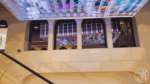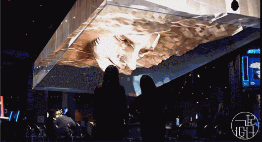 SEOUL. KOREA, AUGUST 2018同样位于商场内,这次 D'strict 将创意运用在了一块倒挂的立方体 LED 屏上,3.5m X 6m X 1.5m 的屏幕足以让人为之一振。韩国传统的服饰图像,伴随飘逸的衣带呈现出梦幻的效果▼Hyundai VR Station